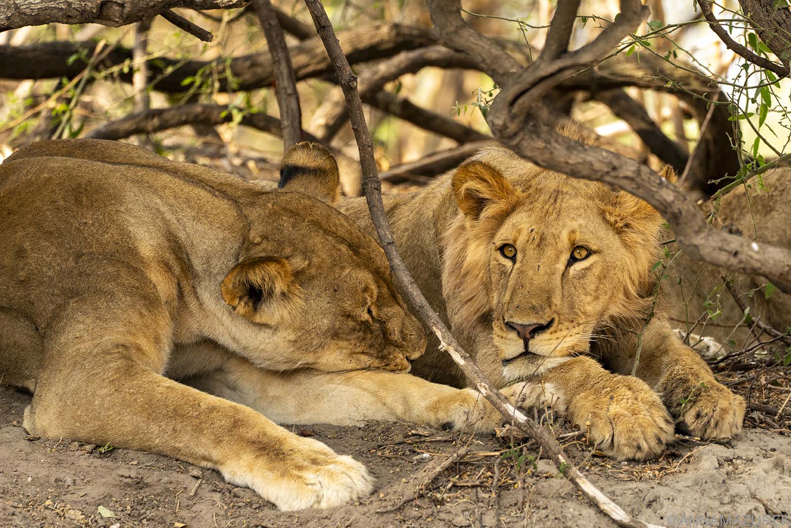 Lions sleeping under a tree after a big meal in Chobe National Park in northwestern Botswana.