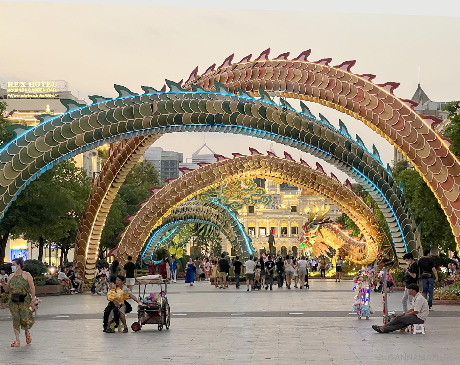 The Nguyen Hue Walking Street decorated for Lunar New Year (TET) in HCMC.