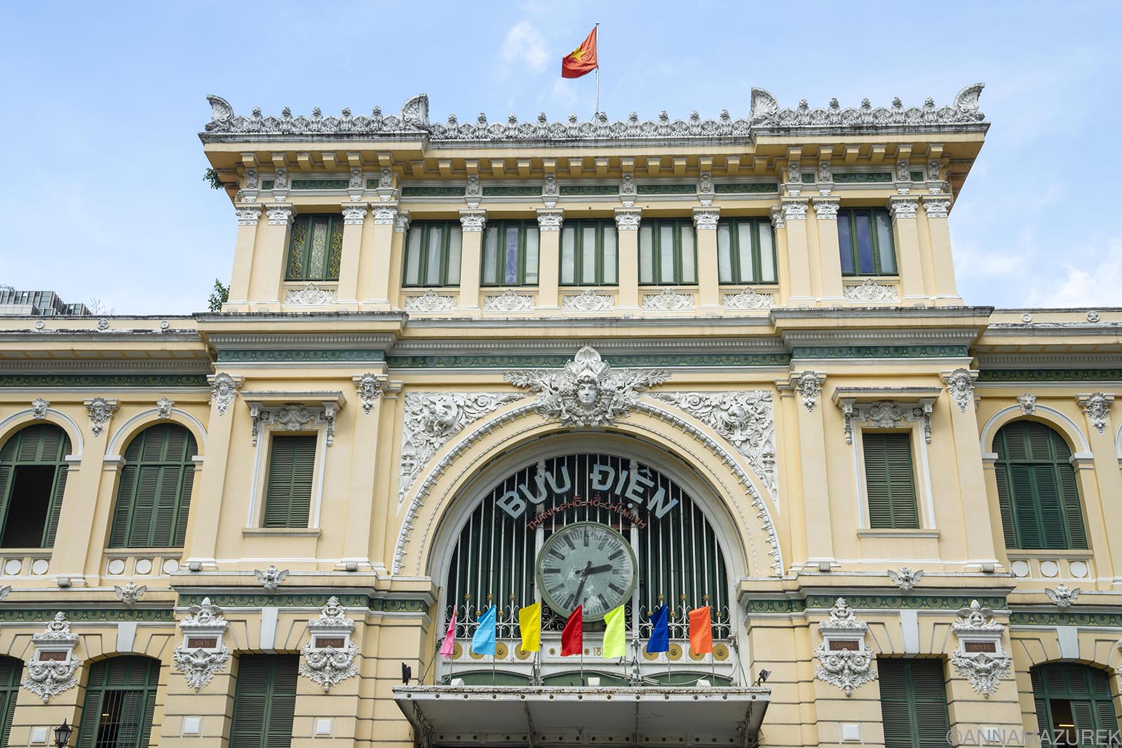 You can’t miss the yellow and green façade of the French-era Central Post Office. The interior is a working post office with side hallways filled with stalls hawking tourist trinkets that distract from the tiled floors and Ho Chi Minh mosaic. Across the street is the Notre Dame Cathedral, which has been flanked by restoration scaffolding since 2017. The interior is only open during mass times until the restoration is completed in 2027.