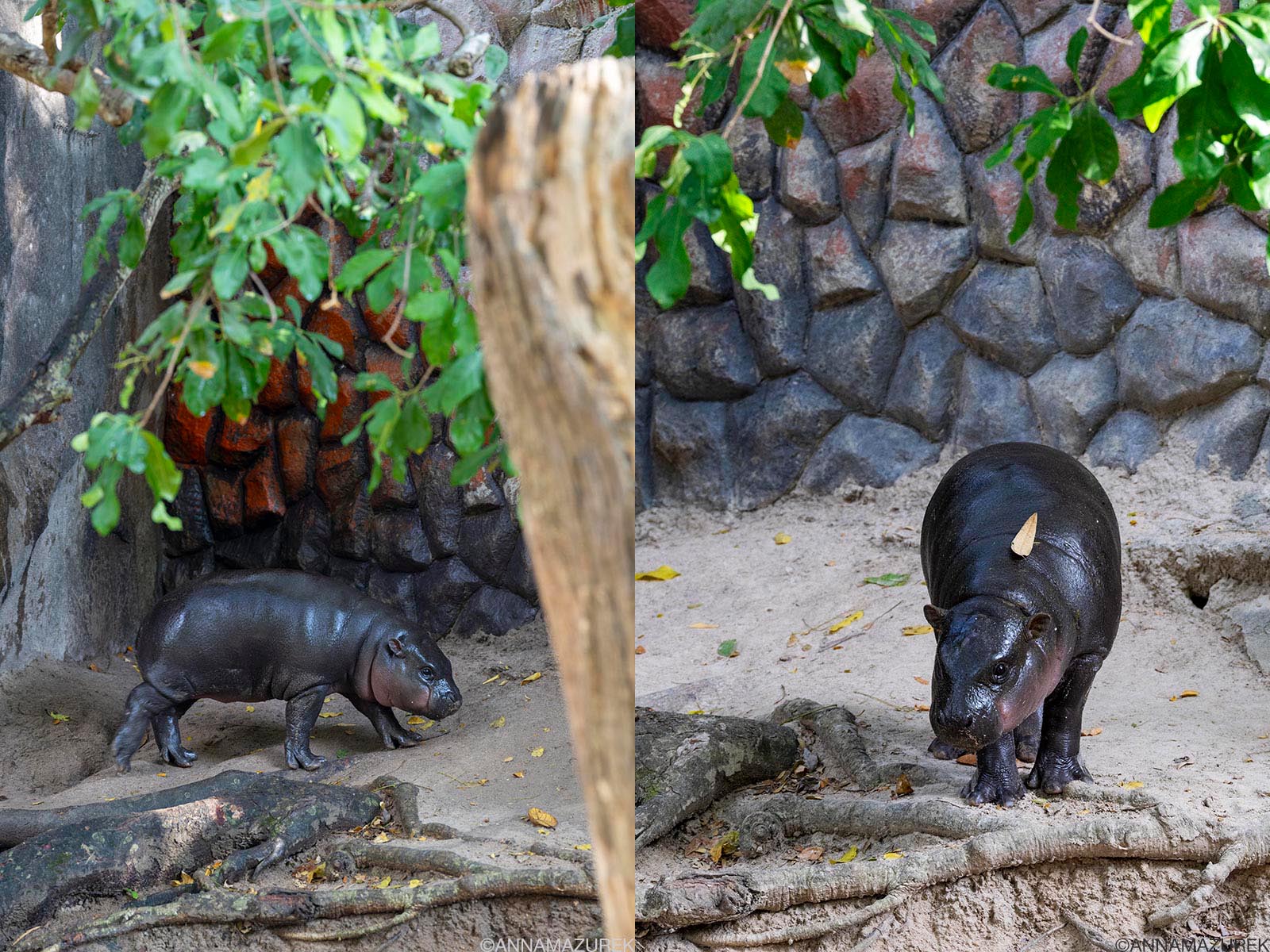 Jona and Moo Deng go off to the back corner to sleep around 9 a.m. They were still sleeping in the same place the rest of the morning and when we left around noon. Of course, both of their butts were facing the people so no one could get photos of their faces. I definitely recommend arriving early at 8 a.m or in the late afternoon for photos. The best photo angles of Moo Deng’s enclosure are from the elevated edges.