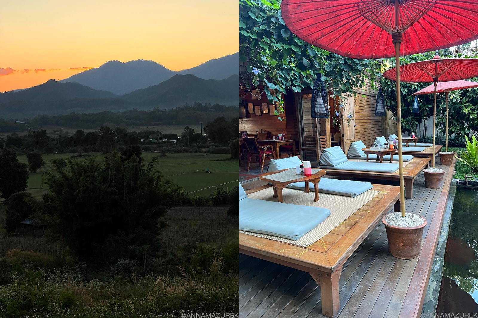 Left: Two Huts, a popular sunset spot in Pai. Right: The Pai Village Boutique Resort.